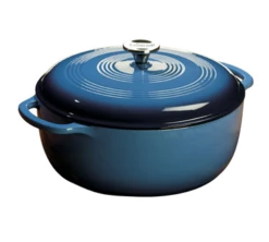 Lodge EC7D33 7.5 Qt. Blue Porcelain Enameled Cast Iron Round Dutch Oven With Cover
