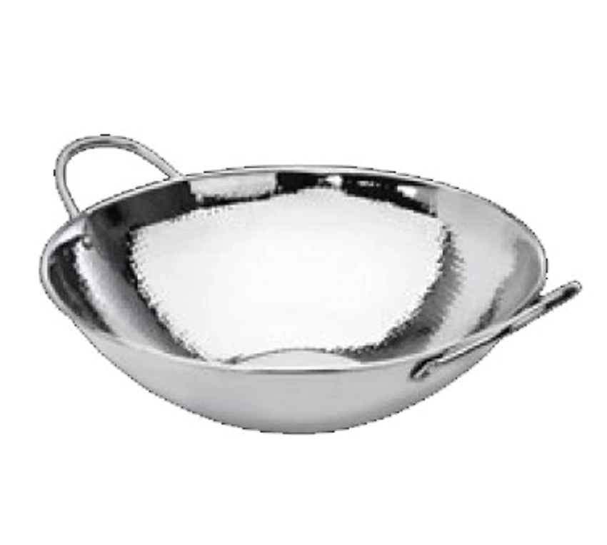 Wok, 14″ dia., 5 qt., with two handles, hammered, stainless steel