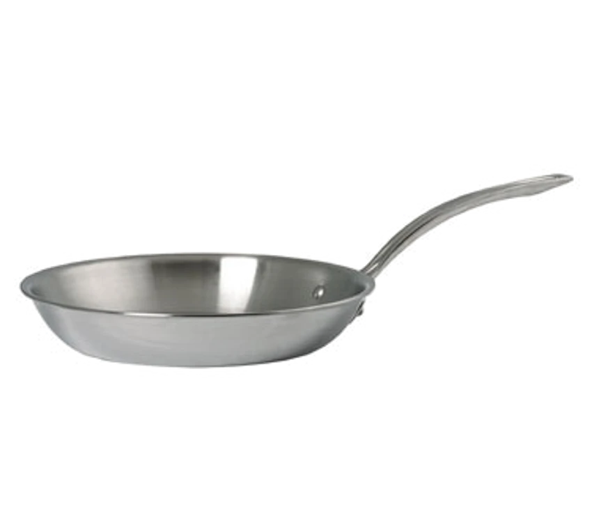 Primo! Fry Pan, 1-1/2 qt., 10″, round, without cover, riveted handle, rolled & sealed rims, stainless steel with aluminum core
