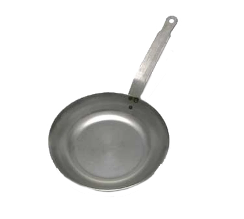 The Vollrath 58910 Carbon Steel Fry Pan is a classic French-style fry pan. It showcases tall curved walls for easy stirring of food without having to worry about spilling. It also allows smooth sliding of food out for transferring or plating. Additionally, the design prevents steam from forming inside the pan. It has a depth of 1-7/8 inches and a top diameter of 9-3/8 inches. For a maximum cooking area, the pan also features a wide flat bottom. This provides greater efficiency and output.
