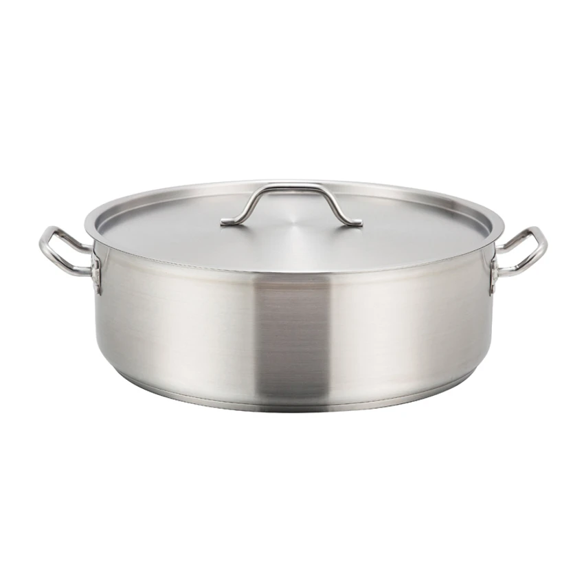Premium Brazier, 25 qt., 17-3/4″ dia. x 6″H, round, with cover, tri-ply heavy duty bottom, with aluminum core, induction ready, 18/8 stainless steel, NSF